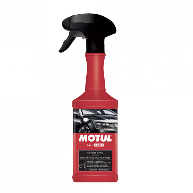 MOTUL Express Shine učinkovito odmašćuje karoseriju automobila zahvaljujući svojoj aktivnoj formulaciji bez ispiranja. Uklanja masni film, katran i druge ostatke bez opasnosti za karoseriju automobila. Učinkovito odmašćuje cijelo tijelo zahvaljujući svojoj aktivnoj formulaciji bez vode. Osobito se preporučuje za dobivanje izgleda novog na bojama koje su sklone tamnjenju. Naglašava boje i ostavlja svijetlu završnicu. Idealan za primjenu između dva pranja vozila. Koristiti bez ispiranja.