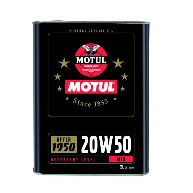 Mineralno višegradno motorno ulje posebno dizajnirano za klasične automobilske motore proizvedene između 1950. i 1970. Lubrikant za 4-taktne benzinske ili dizel motore, s prirodnim usisavanjem, turbo ili kompresorom, s rasplinjačem ili ubrizgavanjem. SAE 20W-50 formula koja zadovoljava standarde 1950-1970 (API SF/CC) i kombinira MOTUL-ovu trenutnu naprednu tehnologiju za isporuku kompletnog paketa performansi za vaš klasični automobil.
